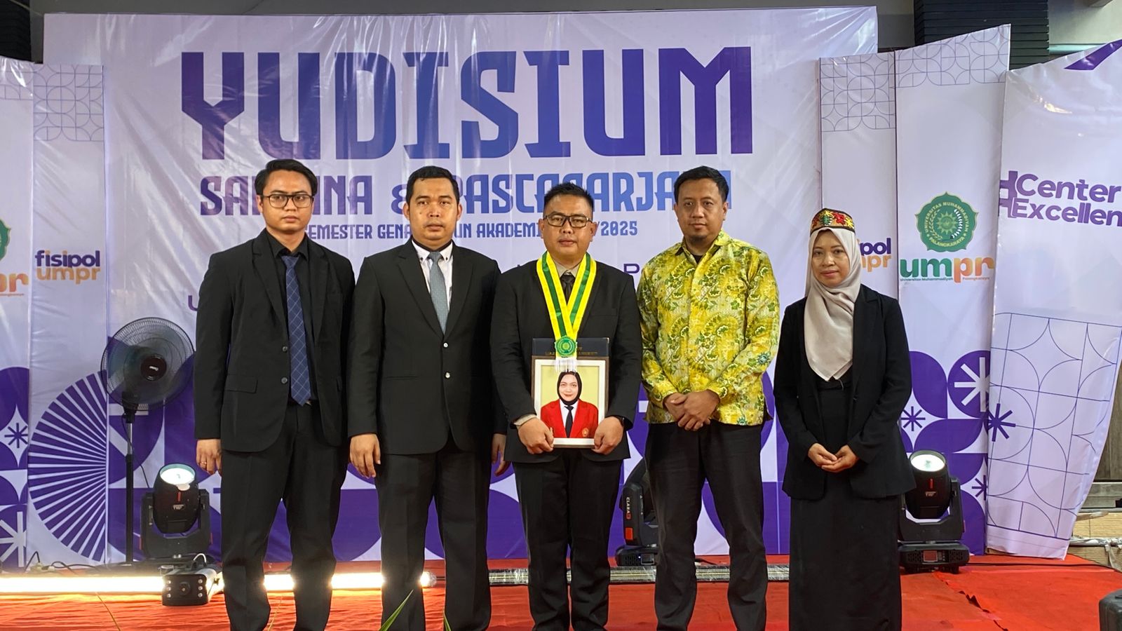 Momen haru terjadi saat nama almarhumah Anita, mahasiswi Program Rekognisi Pembelajaran Lampau (RPL) Administrasi Publik, dibacakan dalam daftar peserta yudisium dan diwakilkan oleh suaminya untuk maju ke depan menerima pengalungan gordon secara simbolis.
